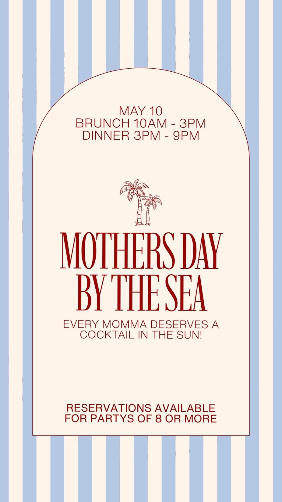 Join us Sunday, May 10 for a day full of delicious bites, ocean vibes, and well-deserved pampering. Treat Mom to a delightful brunch from 10am–3pm, or wind down with a cozy seaside dinner from 3pm–9pm.
