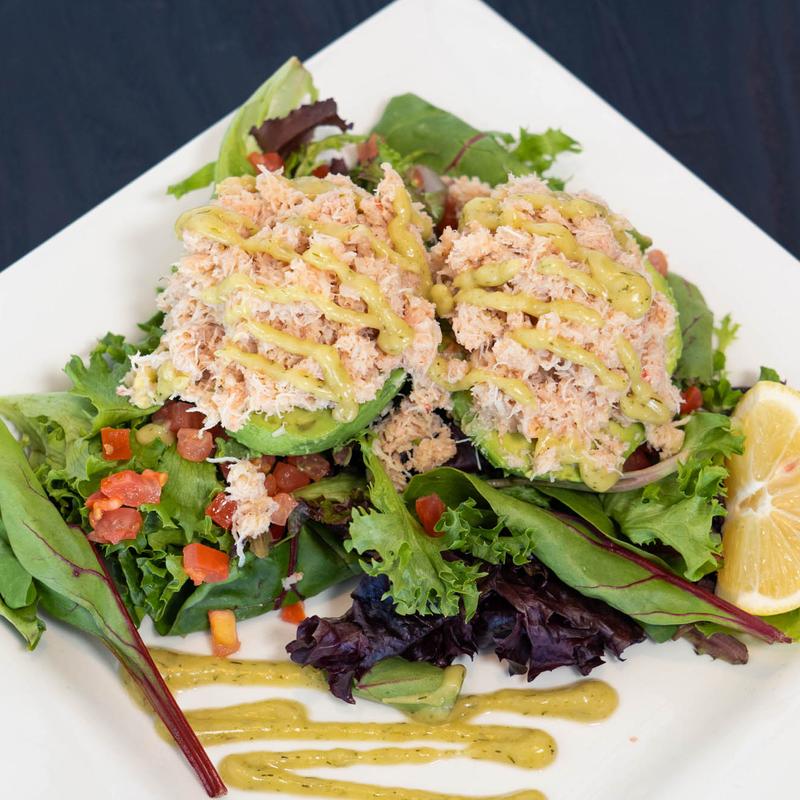 Claw crab, rock shrimp, hass avocado, tomato, baby dill vinaigrette, sonoma greens.